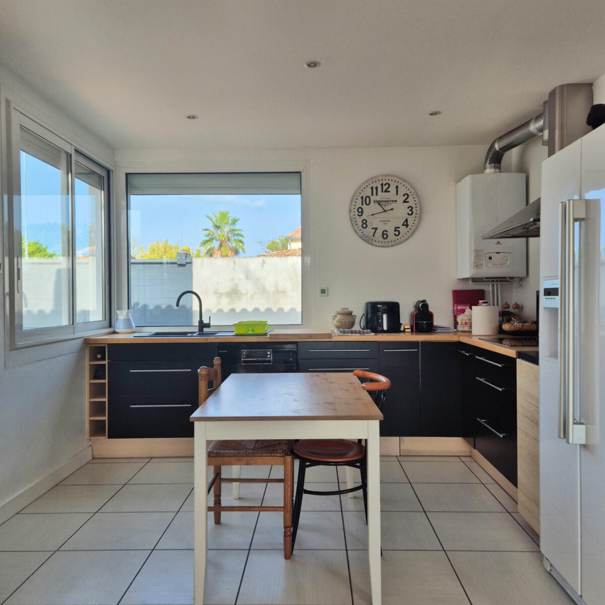 L’Agence Aux Portes de Bordeaux vous propose cette maison individuelle de PLAIN-PIED, d’une superficie d’environ 73 m2, située à Villenave d’Ornon, quartier Chambéry. Dès l’entrée, vous apprécierez sa pièce de vie traversante de plus de 30 m2, avec cuisine ouverte aménagée et équipée, 2 CHAMBRES, 1 salle d’eau, et toilette indépendant. Vous profiterez d’équipements récents tels que la climatisation, le chauffage central au gaz, le double vitrage, et un insert bois. L’accès se fera par un portail motorisé pour plus de sécurité avec possibilité de rentrer plusieurs véhicules sur la parcelle.