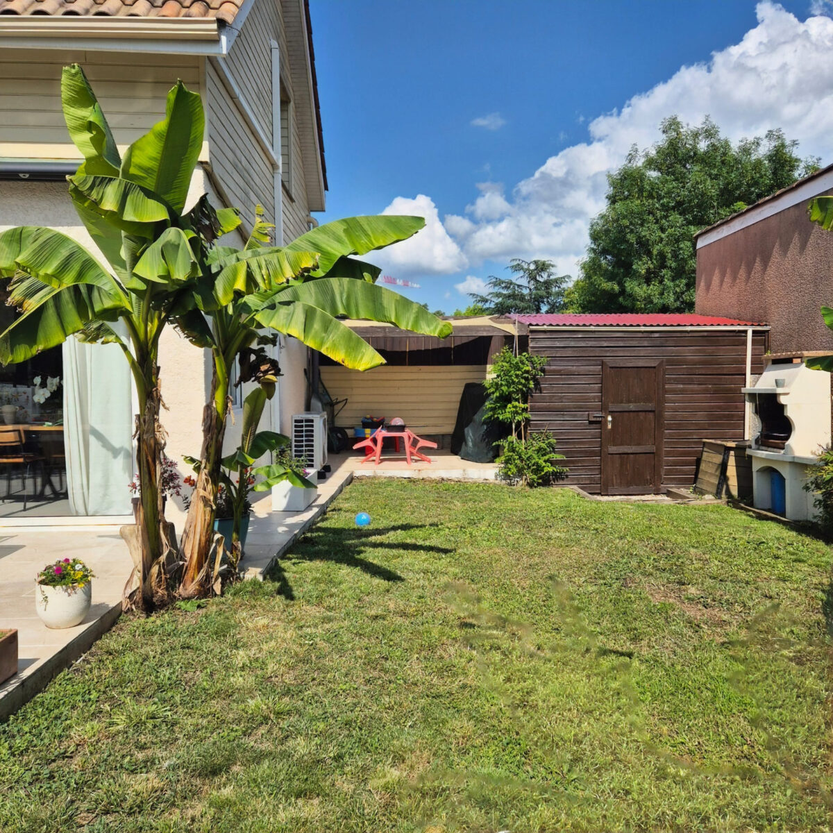 L’Agence Aux Portes de Bordeaux vous propose cette charmante maison individuelle rénovée dans le quartier du Pont de la Maye à Villenave d’Ornon. Au rez-de-chaussée, elle se compose d’une belle pièce de vie LUMINEUSE d’environ 30 m2, comprenant une cuisine ouverte aménagée et équipée, ainsi qu’un salon/salle à manger donnant sur un JARDIN verdoyant. Une pièce polyvalente d’environ 9 m2 pouvant servir de BUREAU, selon vos besoins. Un CELLIER pratique avec un toilette. L’étage dessert 2 GRANDES CHAMBRES, une salle de bains moderne avec douche et baignoire, ainsi qu’un second toilette. Matériaux modernes et finitions soignées, portail motorisé, climatisation réversible pour un confort optimal. Profitez d’une agréable TERRASSE carrelée et d’un JARDIN d’environ 100 m2, exposés sud-Ouest et SANS VIS-A-VIS parfait pour vos moments de détente. Vous pourrez également stationner un véhicule sur la parcelle, ainsi que des vélos et des motos. Idéalement située à deux pas du TRAMWAY ligne C arrêt Vaclav Havel, cette maison bénéficie d’un accès rapide à la rocade et aux commerces de proximité. Vous apprécierez la facilité de déplacement et la proximité des commodités tout en profitant du calme et de la tranquillité de Villenave d’Ornon. Une maison clé en main, idéale pour une vie paisible à proximité de Bordeaux, dans un cadre résidentiel recherché. Primo-accédant ou résidence secondaire. VISITE VIRTUELLE SUR DEMANDE.